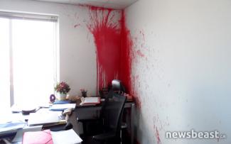 Υλικές ζημιές, συνθήματα και κόκκινες μπογιές στους τοίχους, άφησαν πίσω τους οι κουκουλοφόροι που επιτέθηκαν στα γραφεία του ΤΑΙΠΕΔ, νωρίς το πρωί της Δευτέρας.