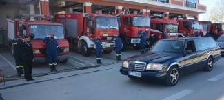 Πένθιμα ήχησαν οι σειρήνες και άναψαν οι φάροι των οχημάτων της Π.Υ.Ζακύνθου τη στιγμή που πέρασε η νεκφροφόρα που μετέφερε τη σορό του αδικοχαμένου πυροσβέστη Διονύση Δρόσου που έφυγε από τη ζωή σε ηλικία 41 ετών. Όλοι οι πυροσβέστες που ήταν εντός και εκτός υπηρεσίες βρισκόντουσαν εκεί και με τον καθιερωμένο χαιρετισμό τους απέδωσαν τιμές στη μνήμη του συναδέλφου τους, θέλοντας με αυτόν τον τρόπο να τον συντροφεύσουν στο τελευταίο του ταξίδι.