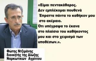 Στο ερώτημα για το πως βρέθηκε μπλεγμένος σ' αυτή την πολύ σοβαρή υπόθεση όπως ο ίδιος την χαρακτηρίζει μας λέει ότι: "Δεν θέλω προς το παρόν να μπω στην ουσία της υπόθεσης. Άλλωστε δεν την έχω διαβάσει. Ξέρω μόνο όσα έχουν δημοσιευτεί στον Τύπο. Το ζήτημα είναι ότι εμείς κάναμε αστυνομικές επιχειρήσεις. Μας άκουγαν και καταγράφανε τις συνομιλίες μας. Και στις 3 περιπτώσεις που κατηγορούμε για τις βεβαιώσεις του άρθρου 27, συλλάβαμε εμπόρους και πιάσαμε μεγάλες ποσότητες για τις οποίες εκδηλώθηκε τοπικό και εθνικής εμβέλειας δημοσιογραφικό ενδιαφέρον. Δεν προέκυψε τίποτα σε βάρος μας. Κάναμε το σωστό. Δεν πήραμε ούτε χρήματα, ούτε κάτι άλλο. Αν είχαμε πάρει θα τα είχαν βρεί, ή στις συνομιλίες έστω και κάποιο υπονοούμενο χρηματισμού. Έχω 4 παιδιά και βλέπω τους συναδέλφους και την κοινωνία καταπρόσωπο. Με κατηγορούν επίσης πως πήραν μέρος σε κάποιες επιχειρήσεις και πολίτες. Αν ξέρουν άλλο τρόπο να έρθουν να μου τον πουν. Όσοι ασχολούνται με υποθέσεις ναρκωτικών ξέρουν πως πολλές φορές αυτό είναι αναπόφευκτο. Και όχι κατ' ανάγκη με άτομα στα οποία βγάλαμε το χαρτί".