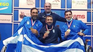 Το δεύτερο μετάλλιο σε Παγκόσμιο πρωτάθλημα ξιφασκίας με αμαξίδιο, πανηγυρίζει η Ελλάδα! Έντεκα χρόνια μετά το χάλκινο στο Παρίσι, η ομάδα του Δημήτρη Κάζαγλη αποτελούμενη από τους Πάνο Τριανταφύλλου, Βασίλη Ντούνη και Γεράσιμο Πυλαρινό, βρέθηκε στην τρίτη θέση του βάθρου των νικητών, στη διοργάνωση που φιλοξενείται στην Βαρσοβία.