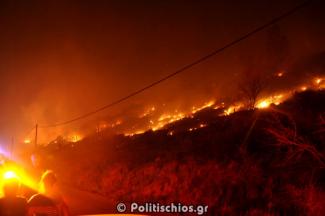 Στο νησί παρέμειναν όλη τη νύχτα και αεροπλάνα τύπου Canadair και ελικόπτερα, ώστε με το πρώτο φως της ημέρας να ριχτούν ξανά στη μάχη.
