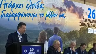 Χαιρετίζω τις εργασίες του 26ου συνεδρίου σας που πραγματοποιείται εδώ στο όμορφο Καρπενήσι, την πατρίδα του Παύλου Μπακογιάννη, του ανθρώπου που είχε προτάξει ως στάση ζωής και καθημερινή προσπάθεια την εθνική συνεννόηση για την ευημερία του τόπου μας απαλλαγμένοι από σύνδρομα του παρελθόντος και από εμφυλιοπολεμικά κατάλοιπα.