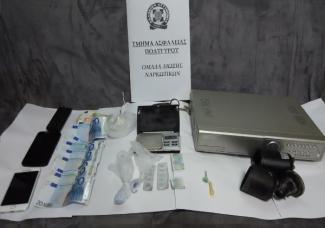 Επίσης στην τραπεζαρία βρέθηκε και κατασχέθηκε μία ηλεκτρονική ζυγαριά ακριβείας, με υπολείμματα ηρωίνης, στον καναπέ του σαλονιού βρέθηκαν και κατασχέθηκαν τρία κενά τμήματα νάιλον σακούλας όμοια με αυτά των συσκευασιών των ναρκωτικών και τρία κινητά τηλέφωνα. Επίσης κατασχέθηκαν δύο κάμερες παρακολούθησης, τοποθετημένες εξωτερικά της οικίας και ένα καταγραφικό.