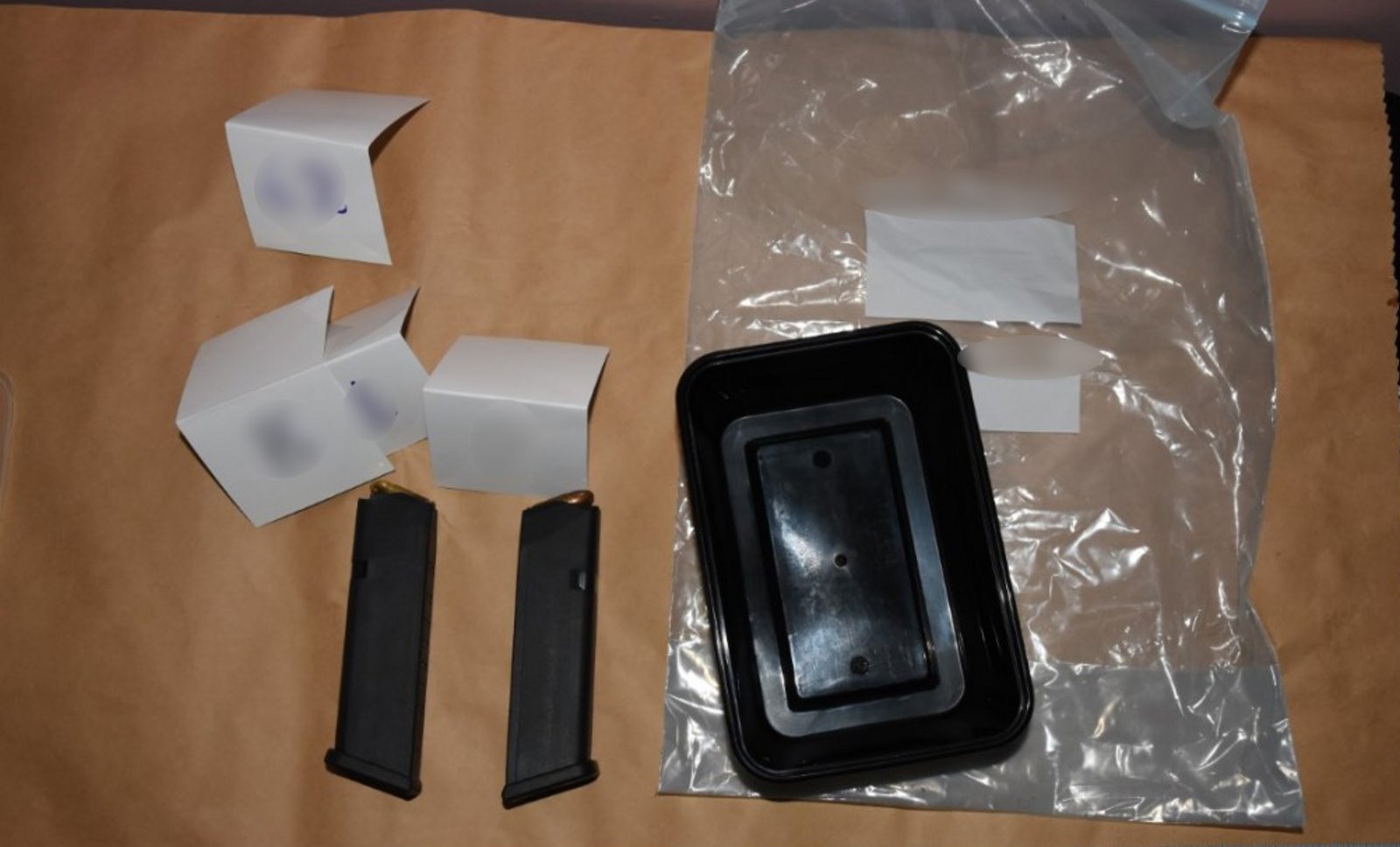 - πιστόλι και δύο γεμιστήρες με 13 φυσίγγια 9mm, συσκευασία 50 φυσιγγίων 9mm,