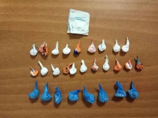 Σε αστυνομικό έλεγχο βρέθηκαν στην κατοχή του και κατασχέθηκαν, 8 αυτοσχέδιες συσκευασίες με ποσότητες ηρωίνης, συνολικού βάρους 3,85 γραμμάρια, 20 αυτοσχέδιες συσκευασίες με ποσότητες κοκαΐνης, συνολικού βάρους 2,73 γραμμάρια και ένα ναρκωτικό δισκίο.