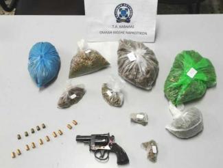 Ειδικότερα, στο πλαίσιο οργανωμένης επιχείρησης, οι αστυνομικοί συνέλαβαν τον 54χρονο, γιατί τον εντόπισαν να κατέχει στο εσωτερικό δύο οικιών στο νομό Καβάλας, εννιά νάιλον συσκευασίες με ακατέργαστη κάνναβη, συνολικού βάρους 705,4 γραμμαρίων, 1 περίστροφο κρότου και 15 φυσίγγια κρότου.