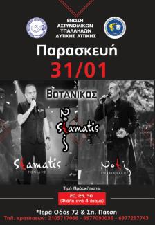 η Ένωση μας σας προσκαλεί να τιμήσετε με την παρουσία σας στον χορό που θα πραγματοποιηθεί την Παρασκευή 31 Ιανουαρίου 2020 στον Βοτανικό (Ιερά Οδός 72 & Σπ. Πάτση) με Σταμάτη Γονίδη και Νότη Σφακιανάκη