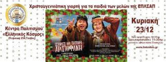Το Διοικητικό Συμβούλιο της ΕΠΛΣ Αττικής - Πειραιά& Νήσων με ιδιαίτερη χαρά σας καλεί και φέτος στη Χριστουγεννιάτικη παιδική γιορτή για τα παιδιά των μελών της Ένωσης.