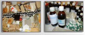 Σε έρευνες που έγιναν στα σπίτια των κατηγορούμένων, βρέθηκαν συνολικά και κατασχέθηκαν πλήθος γυάλινων φιαλιδίων και συσκευασιών που περιείχαν ουσία (υγρή και σε σκόνη) αγνώστου χημικής συνθέσεως, συσκευασίες που περιείχαν κάψουλες με σκόνη αγνώστου χημικής συνθέσεως, γυάλινα βάζα με διαφόρων ειδών βότανα, πλήθος συσκευασιών που περιείχαν κενές κάψουλες, οκτώ σύριγγες με μικροποσότητες χασισέλαιου, πέντε δισκία «ecstasy» και «mdma», πέντε ναρκωτικά δισκία και μικροποσότητα κάνναβης, κατάλογοι προϊόντων, 150 ευρώ, καθώς και μικρά χρηματικά ποσά νομισμάτων άλλων χωρών.