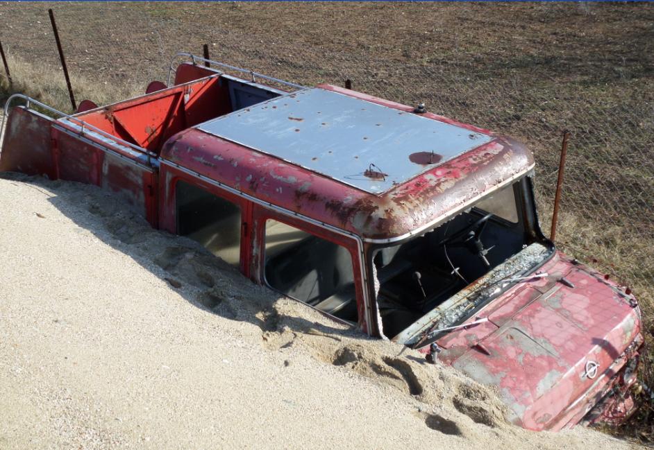 | Φώτο 3: Opel Blitz, ΑΗΕ 5048, πρώην Π.Σ 475, προμήθειας 1972. Από το 2001 ανήκει στο Δήμο Μύκης. Εγκαταστάθηκε σε Δημοτικό χώρο στη Σμίνθη του Ν. Ξάνθης και παραμένει σε θλιβερή κατάσταση αφού κυριολεκτικά αποψιλώθηκε. |