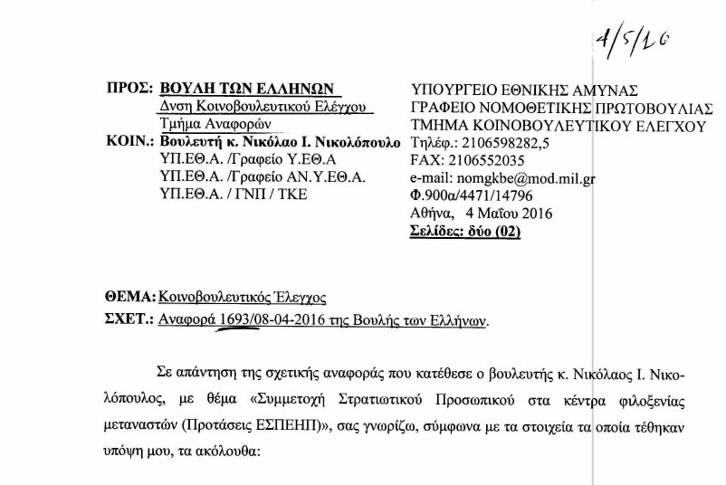 Η απάντηση η απάντηση του αναπληρωτή υπουργού Εθνικής Άμυνας σε κοινοβουλευτικό έλεγχο μετά από επιστολή -πρόταση της Ένωσης Στρατιωτικών Ηπείρου για τα θέματα που απασχολούν τους στρατιωτικούς, είναι γεμάτη ειδήσεις.