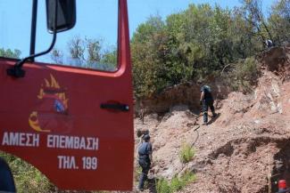 Οχήματα της Πυροσβεστικής μεταβαίνουν από Αυλώνα προς Σικαμινο Ωρωπου, σε κατάσβεση της φωτιάς που έχει εκδηλωθεί.