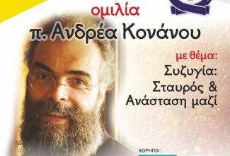 Την Τετάρτη 17 Απριλίου 2019 και ώρα 19:00΄, στο Βελλίδειο Συνεδριακό Κέντρο Θεσσαλονίκης, ο Όμιλος Αστυνομικών Θεσσαλονίκης θα πραγματοποιήσει εκδήλωση – ομιλία με κύριο ομιλητή τον Πανοσιολογιότατο Αρχιμανδρίτη π. Ανδρέα Κονάνο, με θέμα: «Συζυγία: Σταυρός & Ανάσταση μαζί».