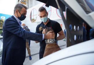 Ολοκληρώνοντας την περιοδεία του στο εκθεσιακό συνεδριακό κέντρο της πόλης ο πρωθυπουργός επισκέφθηκε το Βελλίδειο όπου βρισκόταν ο Judge, ο αστυνομικός σκύλος ανίχνευσης εκρηκτικών υλών ο οποίος έχει αναλάβει τον έλεγχο όλων των χώρων από όπου θα περάσει ο κ. Μητσοτάκης κατά τη διάρκεια της παραμονής του στη Θεσσαλονίκη.