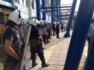 Αγαπητοί κύριοι συνάδελφοι, ένα απίστευτο επεισόδιο εκτυλίχθηκε στην κερκύδα που φιλοξενούσε τους πενήντα οπαδούς του Παναιτωλικού στο γήπεδο της Τούμπας. Ενώ ο ποδοσφαιρικός αγώνας είχε τελειώσει, ένας σεκιουριτάς έκανε νόημα σε έναν Υπαστυνόμο και έναν Αρχιφύλακα που βρισκόταν δίπλα στη διμοιρία μου να ανέβουν και να μεταβούν στο πάνω διάζωμα χωρίς να υπάρχει κανένας λόγος. Οι δύο συνάδελφοι δεν έδωσαν καμιά σημασία στα μορσιστικά σήματα αναγκάζοντας τον σεκιουριτά να έρθει δίπλα και να πει με ύφος χίλιων καρδιναλίων