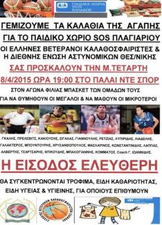 Αφήνουν στην άκρη τη στολή και ξεχνούν για λίγες ώρες την καταπολέμηση της εγκληματικότητας για να δώσουν μια διαφορετική μάχη, αυτήν τη φορά κάτω από τα… καλάθια του Παλέ ντε Σπορ με αντιπάλους τα παλιά αστέρια του ελληνικού μπάσκετ και εισιτήριο ένα… πακέτο μακαρόνια. Αστυνομικοί της Διεθνούς Ενώσεως Θεσσαλονίκης και βετεράνοι καλαθοσφαιριστές με προπονητή τον «ξανθό» Γιάννη Ιωαννίδη θα αναμετρήσουν τις δυνάμεις τους για καλό σκοπό, να συγκεντρωθούν τρόφιμα για το Παιδικό Χωριό SOS στο Πλαγιάρι της Θεσσαλονίκης.