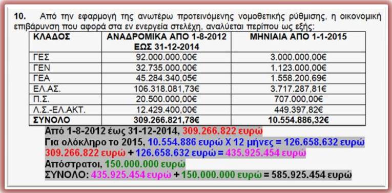 Ο ΥΕΘΑ κ. Καμμένος επανειλημμένως έχει υποστηρίξει ότι έχει σε κωδικό, που δεν μας μαρτυρά, τις πιστώσεις που αφορούν στο υπόλοιπο 50% των αποφάσεων του ΣτΕ για τις Ένοπλες Δυνάμεις. Με δικούς του υπολογισμούς για το ίδιο χρονικό διάστημα το ποσό ανέρχεται στα 586 εκατ ευρώ. Στο τέλος της σελίδας φαίνεται σε πίνακα ο σχετικός υπολογισμός.