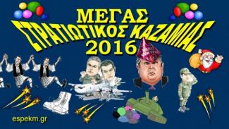 Μπαίνουμε στον τελευταίο μήνα του χρόνου και βρίσκουμε τον Υπουργό Εθνικής Άμυνας κ. Καμμένο με τρομερό προβληματισμό. Η αιτία βρίσκεται στο ότι δεν ξέρει τι άλλο να υποσχεθεί στους στρατιωτικούς. Όσο και να σπάει το κεφάλι του, δεν βρίσκει κάτι να δηλώσει σαν παροχή και μην έχοντας πια κάτι να αποκαταστήσει ή να δημιουργήσει, ουσιαστικά αναγκάζεται σε παραίτηση. Αποσύρει λοιπόν τη στήριξη του στην κυβέρνηση. Ευτυχώς αυτό δεν έχει επίπτωση στην σταθερότητα του πολιτικού σκηνικού καθώς αμέσως «Ποτάμι» και «Ένωση Κεντρώων» σπεύδουν να δηλώσουν την στήριξη τους στην κυβέρνηση με μοναδική απαίτηση οι αρχηγοί τους να αναλάβουν τα ηνία του Υπουργείου Εθνικής Άμυνας. Μετά από ολοήμερες διαπραγματεύσεις τελικά τον Υπουργικό θώκο αναλαμβάνει ο Πρόεδρος της Ένωσης Κεντρώων κ. Βασίλης Λεβέντης.