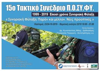 Στο πλαίσιο των εργασιών του 15ου Τακτικού Συνεδρίου της Πανελλήνιας Ομοσπονδίας Συνοριακών Φυλάκων στην Καστοριά και με αφορμή τα είκοσι χρόνια σύστασης της Συνοριακής Φύλαξης (1999 – 2019 ), η Ομοσπονδία διοργανώνει θεματική ενότητα – ημερίδα με θέμα « Συνοριακή Φύλαξη – παρόν και μέλλον. Νέες προοπτικές» την 23η Οκτώβριου 2019 ημέρα Τετάρτη και ώρα 18:00 στο χώρο διεξαγωγής του Συνεδρίου στο ξενοδοχείο LIMNEON RESORT στην Καστοριά.