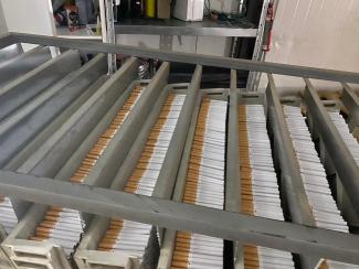 Παράλληλα, κατά την έρευνα στην αποθήκη – εργοστάσιο στην Αττική, εντοπίστηκε πλήρως εξοπλισμένη γραμμή παρασκευής – συσκευασίας τσιγάρων, στην οποία εργάζονταν οι υπόλοιποι (16) συλληφθέντες, ενώ έξω από το «εργοστάσιο» ακινητοποιήθηκε και φορτηγό το οποίο μετέφερε λαθραία πακέτα τσιγάρων.