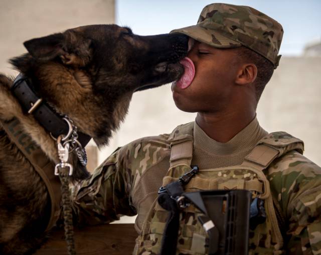 Προσφέρουν τις δικές τους υπηρεσίες στην πρώτη γραμμή του πολέμου ή στα μετόπισθεν και συχνά ανταμείβονται για την προσφορά τους με μετάλλια να κοσμούν το στέρνο τους. Είναι οι στρατιωτικοί σκύλοι, τετράποδοι ήρωες που με τις οξυμένες αισθήσεις τους και την ακλόνητη αφοσίωσή τους έχουν κερδίσει την αναγνώριση στο πεδίο των μαχών. Ο καλύτερος φίλος του ανθρώπου είναι στην υπηρεσία του στρατού εδώ και αιώνες. Αναλαμβάνουν ιδιαίτερα επικίνδυνες αποστολές, όπως να μυρίζουν σε δρόμους ή σε κτίρια για βόμβες ή να εντοπίζουν εχθρούς. Εχουν σώσει αμέτρητες ζωές, ενώ μόνο στο στρατό των ΗΠΑ αυτή τη στιγμή «υπηρετούν» περίπου 2.700 σκύλοι. Ας δούμε μερικές από τις καλύτερες φωτογραφίες που κυκλοφορούν στο διαδίκτυο.