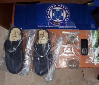 Συγκεκριμένα, εντός υποδημάτων και ενός ενδύματος βρέθηκαν δύο (2) νάιλον συσκευασίες με κοκαΐνη, συνολικού βάρους 1,3 γραμμαρίων και δύο (2) νάιλον συσκευασίες με ακατέργαστη κάνναβη, συνολικού βάρους 18 γραμμαρίων.