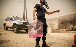 Οι έντρομοι κάτοικοι άρπαξαν ό,τι προλάβαιναν να σώσουν από τη φωτιά, μεταξύ αυτών πολύτιμα αντικείμενα, αλλά και τα κατοικίδιά τους, από σκυλιά και γάτες μέχρι οικόσιτα πουλιά, ενώ στις προσπάθειές τους συνέδραμαν οι πυροσβέστες και οι αστυνομικοί που έσπευσαν να τους βοηθήσουν, όπως ο εικονιζόμενος αστυνομικός, που απαθανατίστηκε κρατώντας στο χέρι ένα κλουβί μαζί με τους «ενοίκους» του.