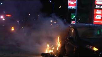 Aυτοκίνητο και μηχανή τυλίχθηκαν στις φλόγες μετά από σύγκρουση - Ένας σοβαρά τραυματίας (BINTEO &ΦΩΤΟ)