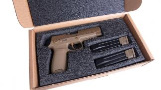 Επιπλέον, το πιστόλι έρχεται με την ίδια συσκευασία από χαρτόνι όπως παραδίδεται στις μονάδες του Στρατού, όπως το 101ο Αεροπορικό και το 3ο Σύνταγμα Ιππικού.