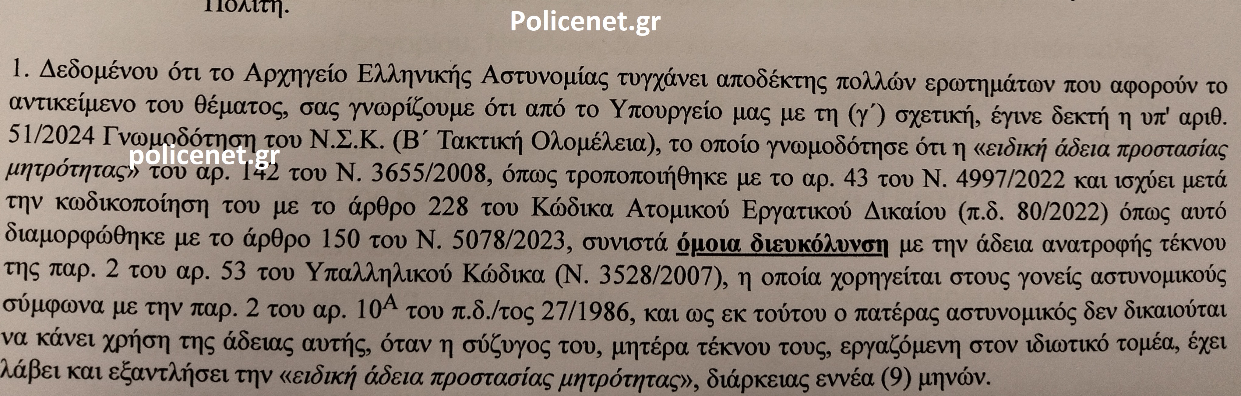 Αρκετοί αναγνώστες του Policenet.gr επικοινωνούν μαζί μας, λόγω αποριών αναφορικά με το δικαίωμα λήψης της προβλεπόμενης άδειας ανατροφής τέκνου.