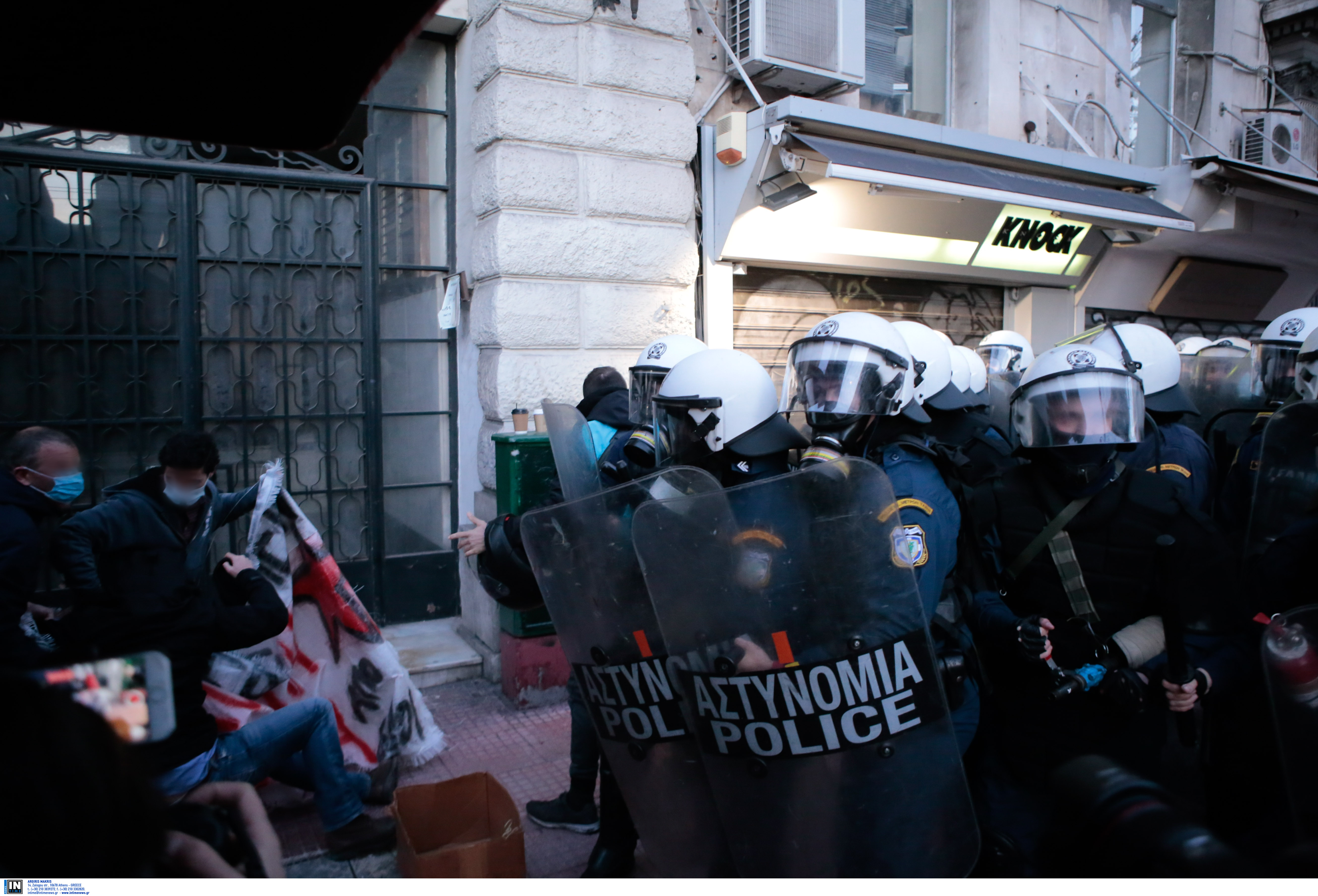 Ενταση με χημικά και προσαγωγές σημειώνεται αυτή την ώρα στην Πανεπιστημίου μεταξύ Αστυνομίας και συγκεντρωμένων αλληλέγγυων του Δημήτρη Κουφοντίνα.