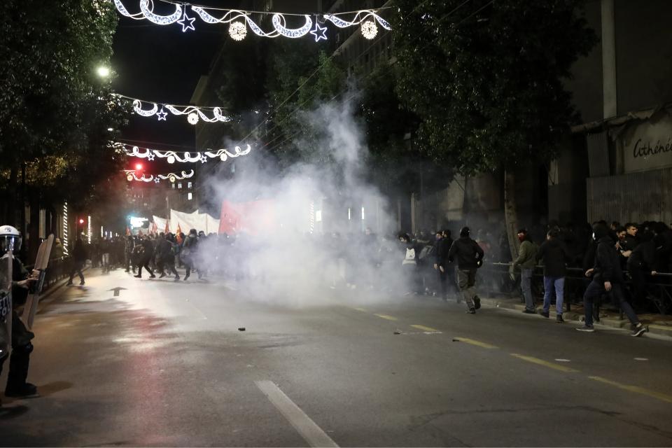 Ένταση επικράτησε νωρίτερα στην πορεία που πραγματοποιείται απόψε στην Αθήνα λόγω του θανάτου του 16χρονου Ρομά.