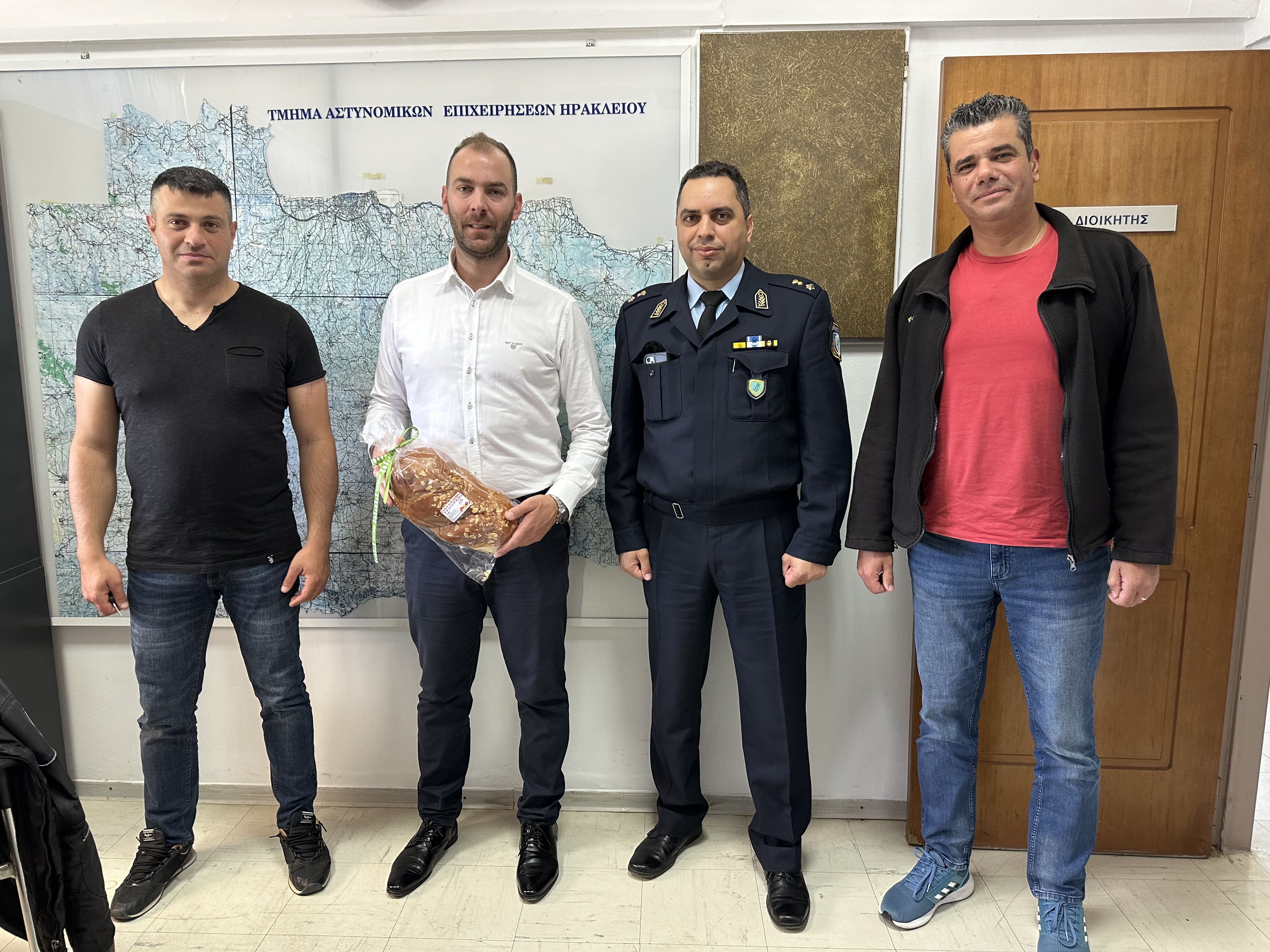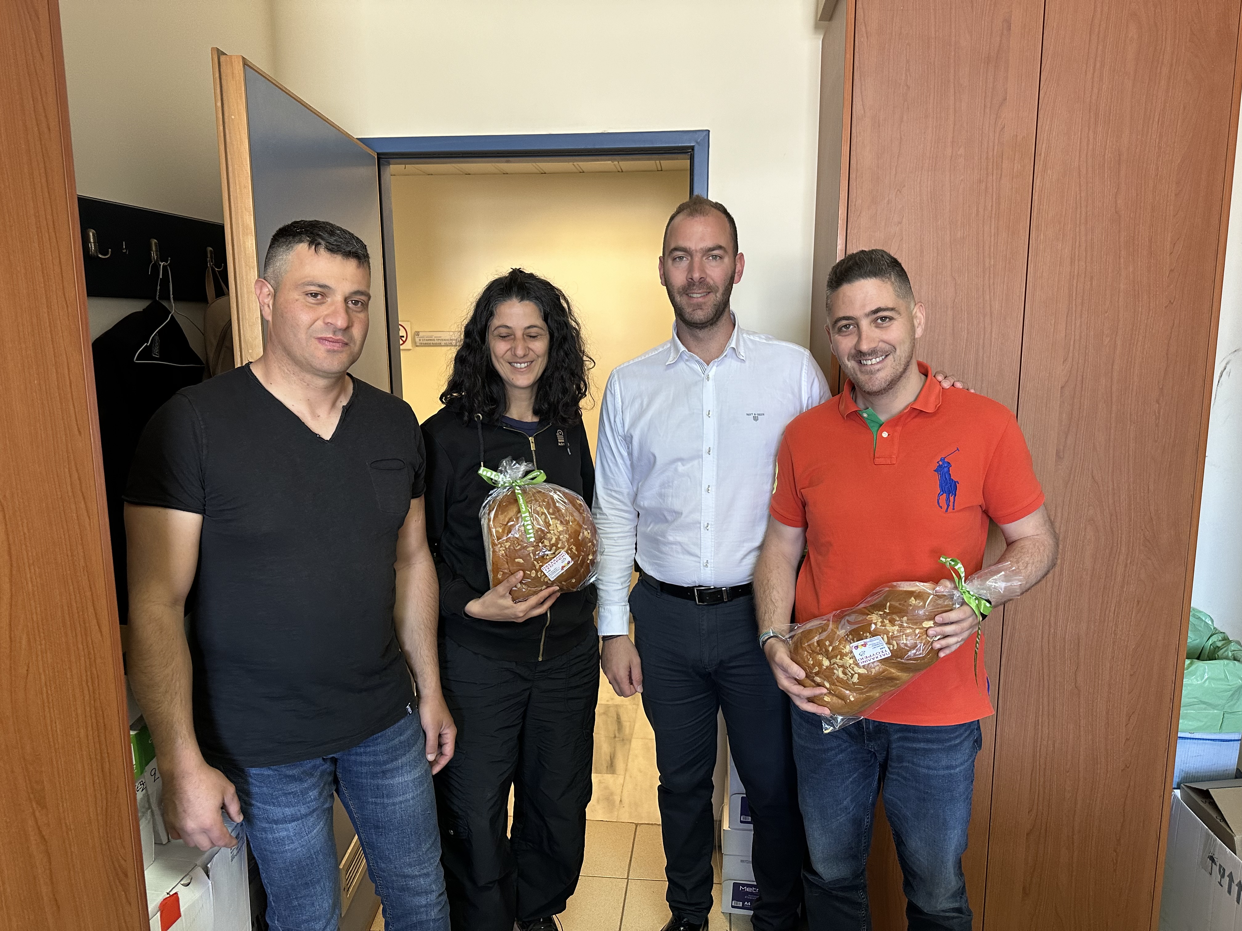 Αντιπροσωπεία του Διοικητικού Συμβουλίου της Ένωσης μας αποτελούμενη από τον Πρόεδρο και τον Γενικό Γραμματέα πρόσφερε σε όλες τις Υπηρεσίες της Διεύθυνσης Αστυνομίας Ηρακλείου και παρευρέθηκε σε όλες τις υπηρεσίες που στεγάζονται στο Αστυνομικό Μέγαρο Ηρακλείου, μοιράζοντας παραδοσιακά τσουρέκια και ανταλλάσσοντας τις καθιερωμένες ευχές, με τους συναδέλφους που βρίσκονταν στο καθήκον την Άγια ημέρα της Αναστάσεως του Κυρίου.