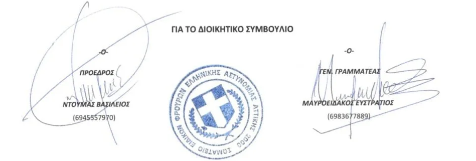 Σε περίπτωση έλλειψης απαρτίας, θα πραγματοποιηθεί δεύτερη Γενική Συνέλευση, την Δευτέρα 18 Νοεμβρίου 2024 και ώρα 17:00 στο αμφιθέατρο της Γενική Αστυνομικής Δ/νσης Αττικής