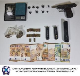 Συνελήφθη χθες (4 Σεπτεμβρίου 2023) το βράδυ σε περιοχή της Θεσσαλονίκης, από αστυνομικούς της Ομάδας Δίωξης Ναρκωτικών του Τμήματος Ασφάλειας Βέροιας, ένας αλλοδαπός άνδρας, για παράβαση της νομοθεσίας περί ναρκωτικών και της νομοθεσίας περί όπλων.