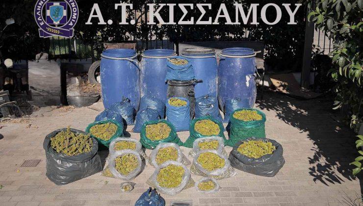Κατά τη διάρκεια της επιχείρησης εντοπίστηκε, υπόγειος υπαίθριος χώρος επιμελώς καλυμμένος όπου βρέθηκαν και κατασχέθηκαν βαρέλια τα οποία περιείχαν ανισοβαρείς συσκευασίες με ποσότητες ακατέργαστης κάνναβης συνολικού βάρους 35,5 κιλών. Επιπλέον κατασχέθηκαν ζυγαριά ακριβείας και υλικά για τη συσκευασία της κάνναβης.