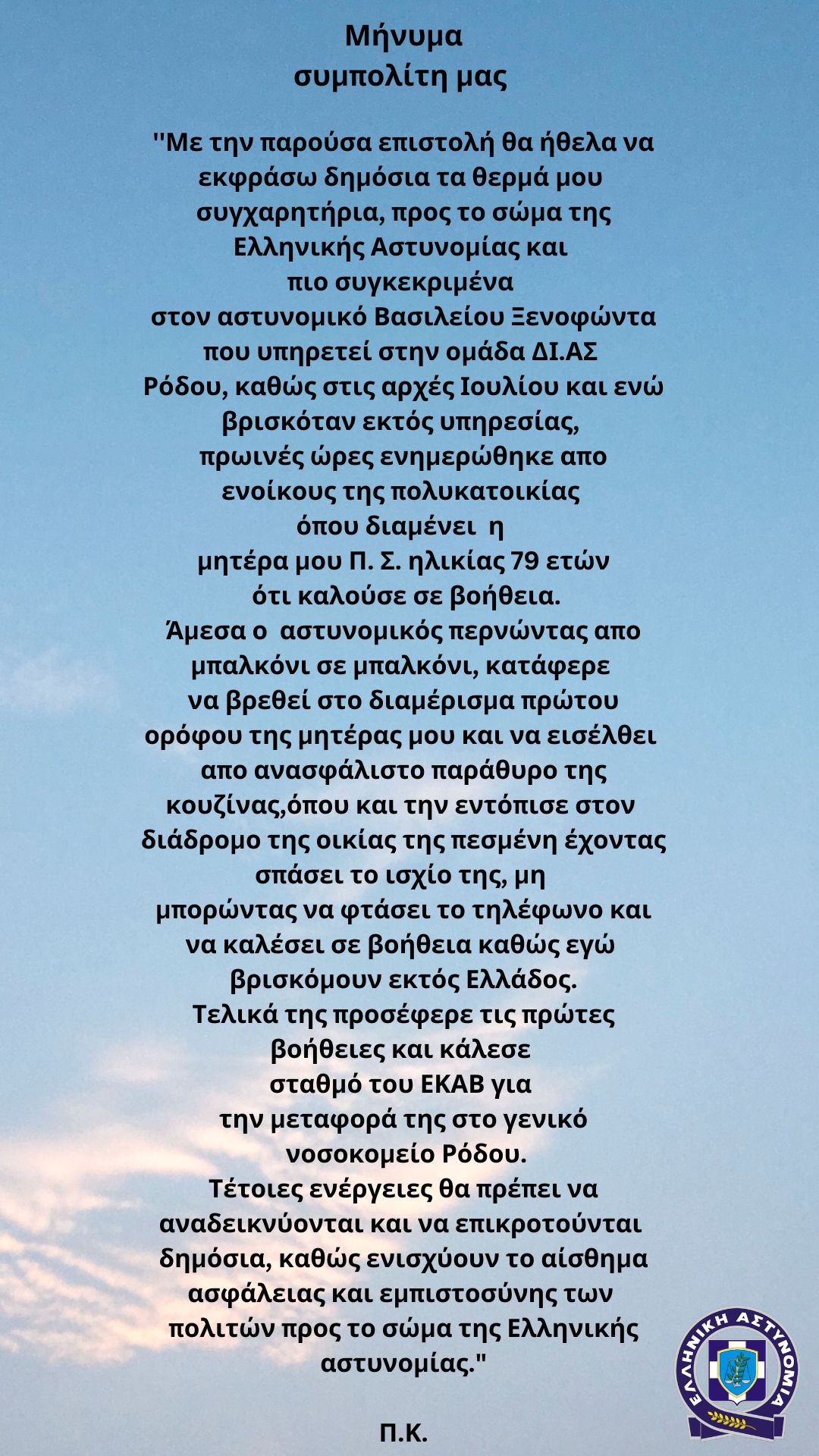 Εικόνα 14:19 | 03/08/2024 Ανάρτηση στο facebook της Περιφερειακής Γενικής Αστυνομικής Διεύθυνσης Νοτίου Αιγαίου