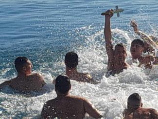 Ο αστυνομικός της ομάδας ΔΙ.ΑΣ. του Α.Τ. Άμφισσας - Δελφών Ασπρούδας Αργύρης, έπιασε πρώτος το σταυρό, στον αγιασμό των υδάτων στην Ιτέα Φωκίδας.