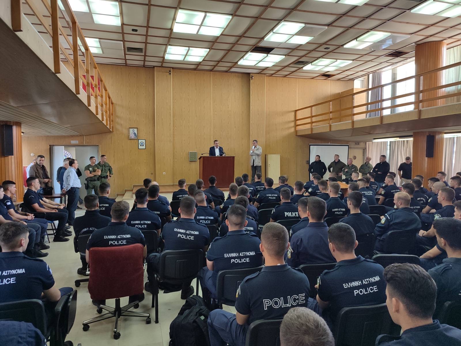 - Να καλωσορίσουμε τους νέους συναδέλφους που ήρθαν στην υπηρεσία μας. Να τους ευχηθούμε καλή θητεία και να θυμούνται ότι η κάθε διμοιρία είναι μια οικογένεια και ο ένας στηρίζει τον άλλον.