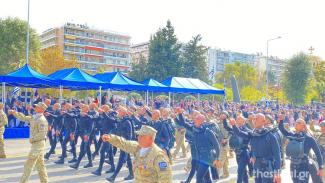 Τα μέλη της Ομάδας, οι βατραχάνθρωποι, που τις προηγούμενες ημέρες έκαναν την πρωινή τους γυμναστική κατά μήκος της παραλίας της πόλης, παρέλασαν σήμερα υπερήφανα, υπό το βλέμμα των επισήμων αλλά και των πολιτών που συγκεντρώθηκαν στη νέα παραλία, φέροντας τον καταδυτικό εξοπλισμό τους και βροντοφωνάζοντας συνθήματα.