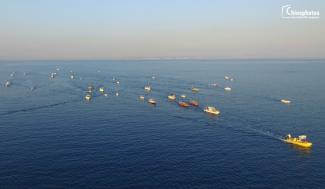 Πιστά και φέτος στο έθιμο που θέλει τη διά θαλάσσης μεταφορά της εικόνας του Αγίου Αιμιλιανού στην Καλλιμασιά, τα μέλη του Ομίλου Φουσκωτών Χίου σχημάτισαν νηοπομπή αποδίδοντας τιμές στον πανηγυρίζοντα Άγιο.