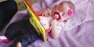 Στη συνέχεια ο Flom τραβάει το ένα βιβλίο προς τα δεξιά μαζί με το κάτω μέρος του σώματος του μωρού.