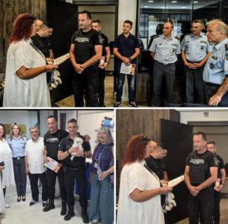 Γι αυτή την παραδειγματική τους πράξη βραβεύτηκαν σήμερα από την Ομοσπονδία ΝΕΜΕΣΙΣ, με τους ανθρώπους της να τονίζουν τη σημαντική καθημερινή προσφορά των ανδρών της ΕΛ.ΑΣ για τη διάσωση των ζώων .