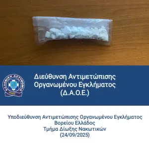 Από αστυνομικούς της Υποδιεύθυνσης Αντιμετώπισης Οργανωμένου Εγκλήματος Βορείου Ελλάδος συνελήφθη απογευματινές ώρες χθες, Τετάρτη 24 Σεπτεμβρίου 2025, σε περιοχή της Θεσσαλονίκης, 47χρονος κατηγορούμενος για παραβάσεις των νομοθεσιών για τα ναρκωτικά και τα όπλα.