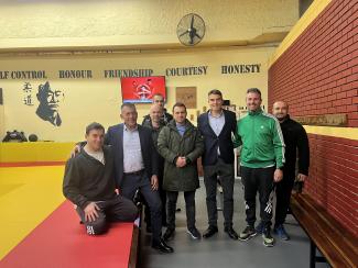 Τον κ. Βρούτση υποδέχθηκε και καλωσόρισε ο επικεφαλής προπονητής της ομάδας τζούντο της ΕΛ.ΑΣ στην Θεσσαλονίκη κ. Ψαλλίδας Περικλής μαζί με τους αθλητές και συνεργάτες του.