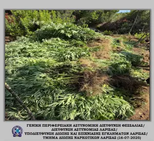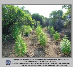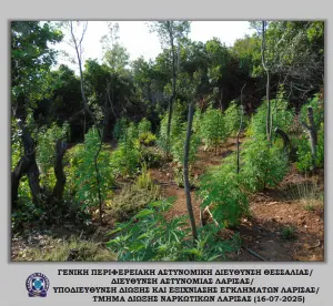 Μετά από συστηματική έρευνα και συντονισμένες ενέργειες, τα στελέχη του Τμήματος Δίωξης Ναρκωτικών κατάφεραν να εξακριβώσουν την δράση εγκληματικής ομάδας που καλλιεργούσε ιδιαίτερα μεγάλο αριθμό δενδρυλλίων κάνναβης σε δυσπρόσιτη δασική περιοχή του Δήμου Αγιάς Λάρισας, εντοπίζοντας περισσότερα από -6.000- δενδρύλλια κάνναβης.