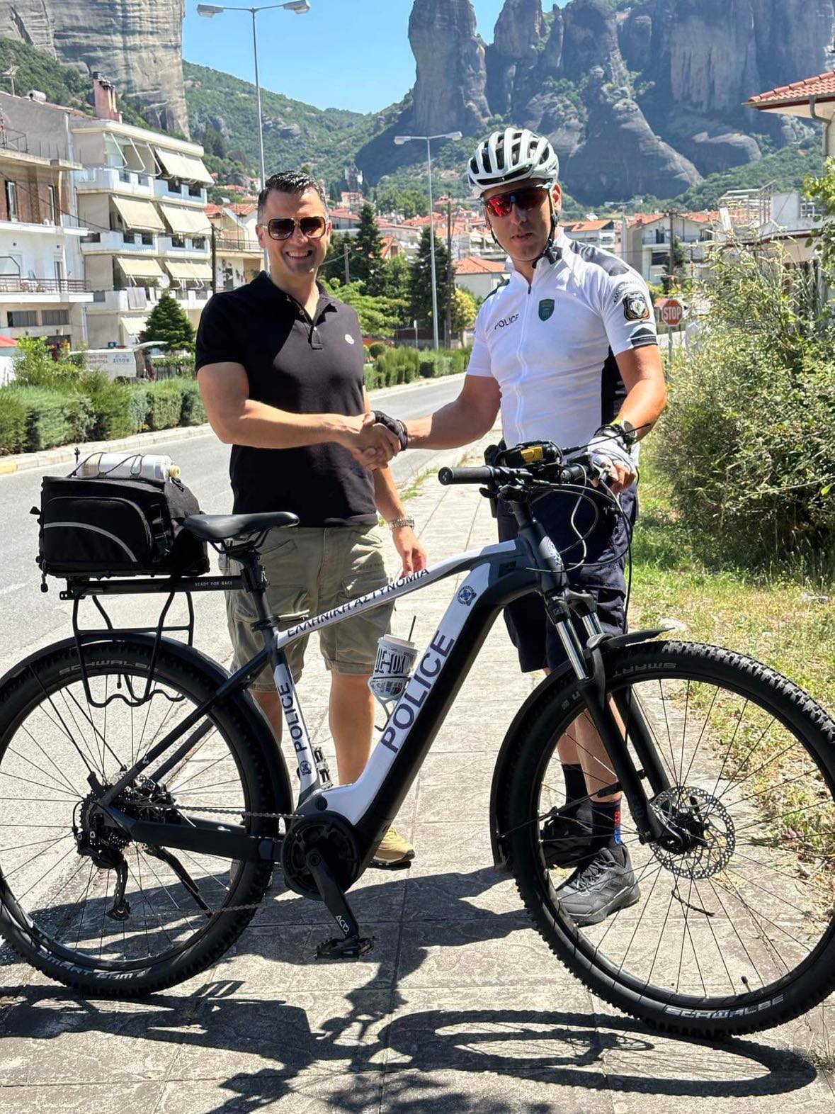 Η δωρεά αυτή αποσκοπεί στο να δώσει τη δυνατότητα στους αστυνομικούς να περιπολούν στην περιοχή των Μετεώρων με ένα μέσον ευέλικτο ,οικολογικό και αθόρυβο στοιχεία που ταιριάζουν στη περιοχή. Η τελετή παράδοσης -παραλαβής του ηλεκτρικού ποδηλατου εγινε από τον Κύριο Γαλανη Νίκο ,ένος από τους ιδιοκτήτες της εταιρίας καφέ στο Αστυνομικό τμήμα Μετεώρων.