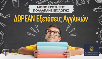 «Δηλώστε δωρεάν συμμετοχή σε πιστοποίηση της αγγλικής γλώσσας. Οι εξετάσεις είναι αναγνωρισμένες από τον ΑΣΕΠ και διεξάγονται από την Ελληνοαμερικανική Ένωση. Τα εξέταστρα καταβάλλονται μόνο σε περίπτωση επιτυχίας στις εξετάσεις και εφόσον επιθυμείτε την έκδοση του πιστοποιητικού!