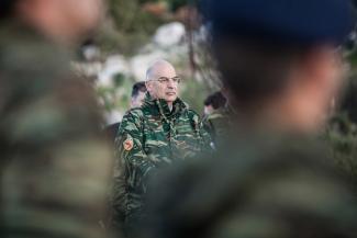 «Καταλαβαίνω ότι εσείς όλοι εδώ, κάνετε κάτι που είναι περισσότερο από ό,τι κάνουμε όλοι εμείς. Και θα ήθελα να σας διαβεβαιώσω ότι η ελληνική κοινωνία στο σύνολό της, η κυβέρνηση, ο πρωθυπουργός, το αντιλαμβάνονται απολύτως», τόνισε ο υπουργός Αμυνας, στέλνοντας στη συνέχεια το εξής μήνυμα προς τους γείτονές μας: «Η Ελλάδα έχει την τιμή να έχει σχέση ειρήνης και φιλίας με όλους τους λαούς. Επίσης όμως είναι απολύτως αποφασισμένη να προασπίσει τόσο την εθνική της κυριαρχία όσο και την εθνική της αξιοπρέπεια».