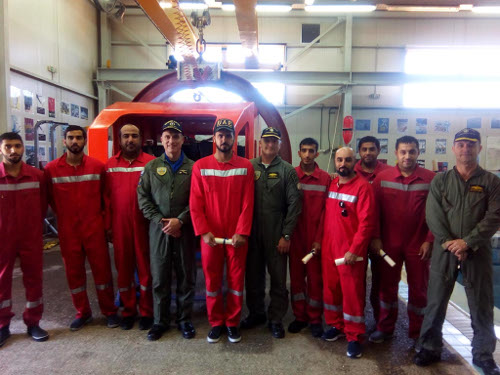 Ετσι, στο πλαίσιο του Προγράμματος Στρατιωτικής Συνεργασίας Ελλάδας - Ηνωμένων Αραβικών Εμιράτων, από 22 έως 23 Μαϊου 2017 παρασχέθηκε εκπαίδευση σε οκτώ στελέχη των Ενόπλων Δυνάμεων των Ηνωμένων Αραβικών Εμιράτων στο σχολείο "Διαφυγή από Βυθιζόμενο Ελικόπτερο" στις εγκαταστάσεις της Σχολής Ελικοπτέρων Ναυτικού στον Μαραθώνα οι οποίοι εκπαιδεύτηκαν από το προσωπικό του Πολεμικού Ναυτικού.